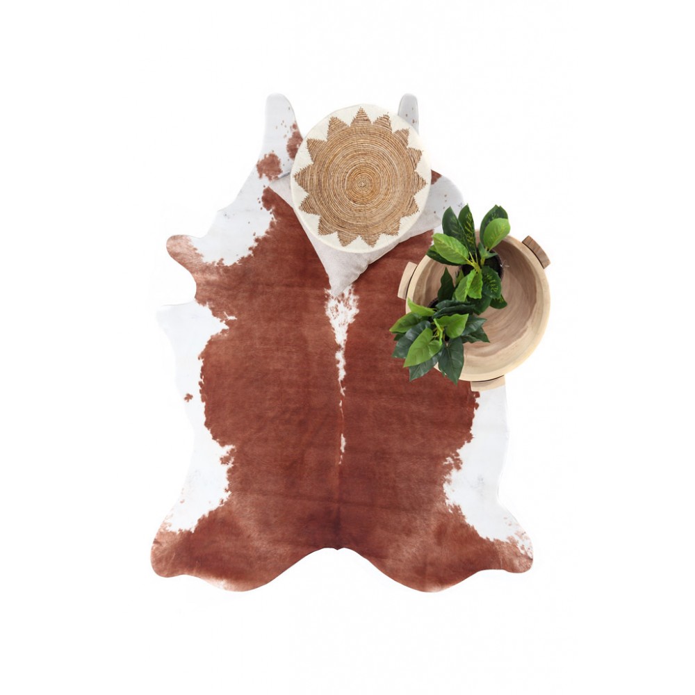 Κατασκευασμένο από 100% πολυεστέρα, αποτυπώνει τεχνητά την εικόνα του φυσικού δέρματος αγελάδας, με αρκετές εναλλαγές αποχρώσεων. Το υπόστρωμά του προσομοιώνει επίσης το πραγματικό δέρμα του ζώου (τεχνητό suede) προσδίδοντας την αισθητική του φυσικού στο χώρο, αλλά με οικολογική ευαισθησία.