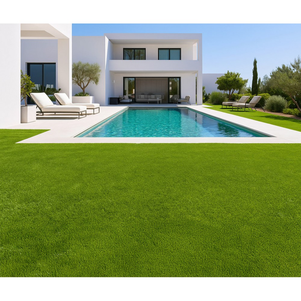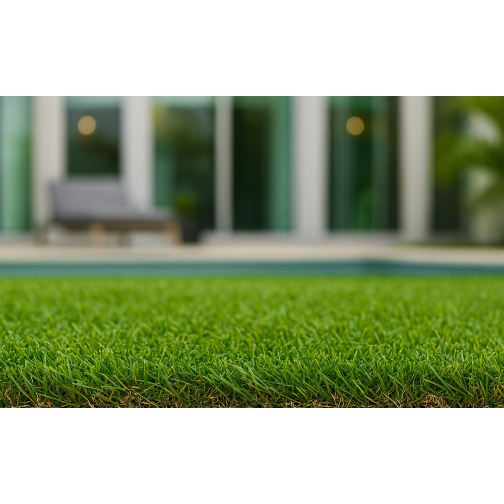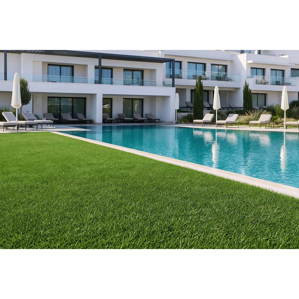 Συνθετικό γκαζόν Cameo 38mm για εξωτερικό χώρο, κατάλληλο για βεράντες, προσόψεις καταστημάτων, κήπους, αυλές, παιδότοπους, σχολεία, περιβάλλοντες χώρους πισίνας, beach bar, roof gardens κ.α. Αποτελείται από ίσια πράσινη μονόκλωνη ίνα πολυαιθυλενίου και σγουρή μπεζ ίνα πολυπροπυλενίου.
