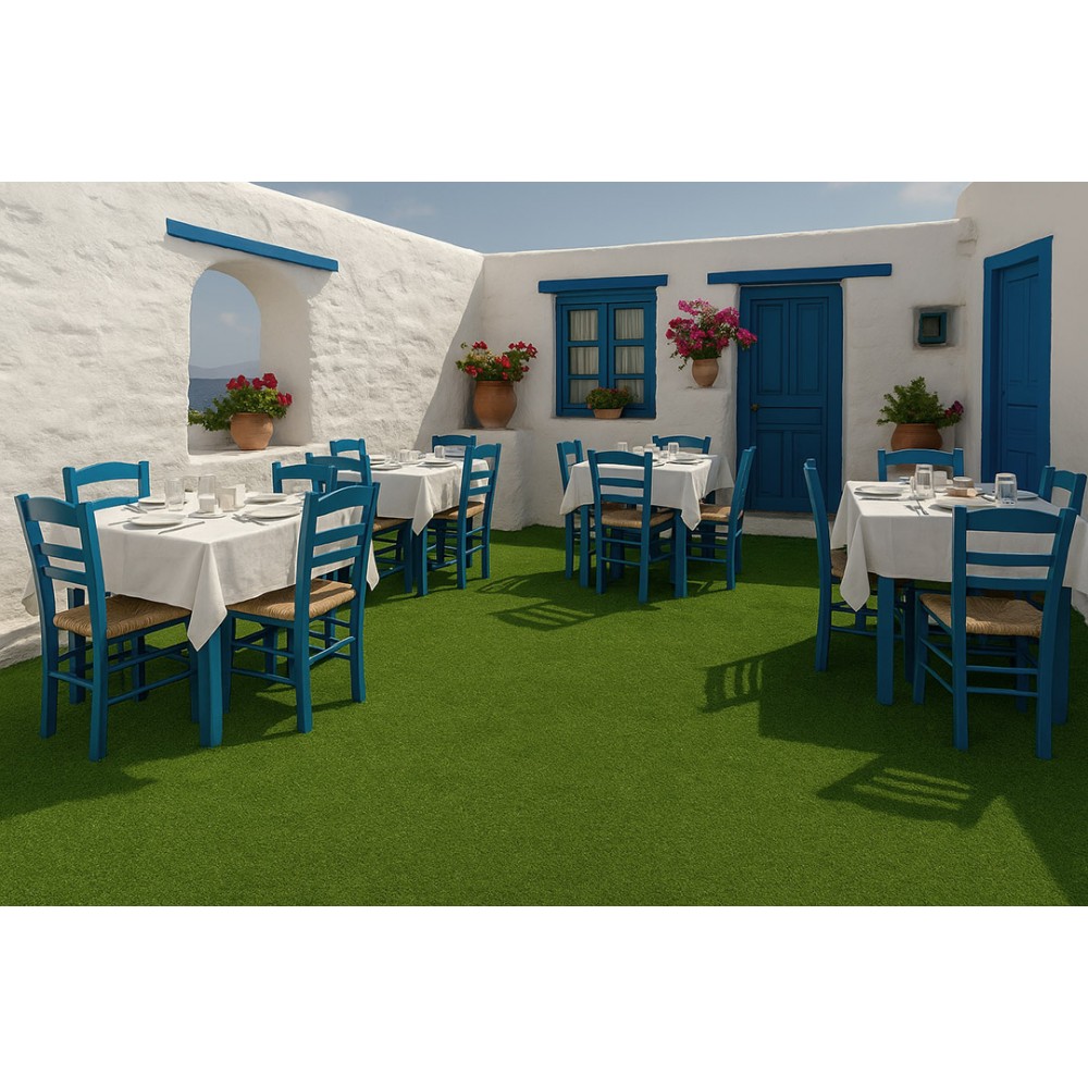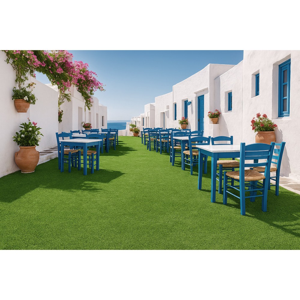 Συνθετικό γκαζόν Malta 9mm σε πολύ προσιτή τιμή για εξωτερικό χώρο, κατάλληλο για βεράντες, προσόψεις καταστημάτων, κήπους, αυλές, παιδότοπους, σχολεία, περιβάλλοντες χώρους πισίνας, beach bar, roof gardens κ.α. Αποτελείται από ίσια πράσινη μονόκλωνη ίνα πολυπροπυλενίου με πολύ πυκνή πλέξη.