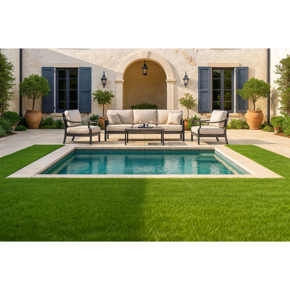 Το γκαζόν κόβεται στο φάρδος του ρολού (2 ή 4 m).