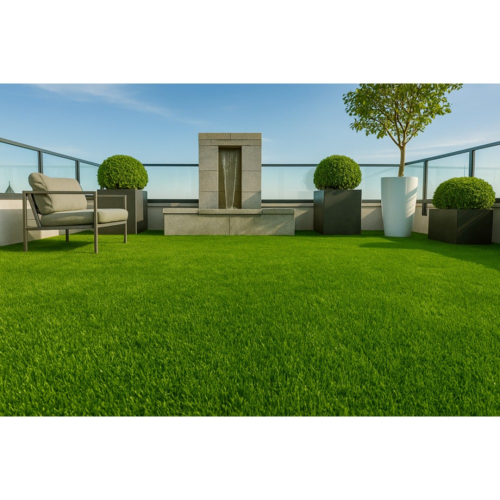 Συνθετικό γκαζόν Simi 40mm για εξωτερικό χώρο, κατάλληλο για βεράντες, προσόψεις καταστημάτων, κήπους, αυλές, παιδότοπους, σχολεία, περιβάλλοντες χώρους πισίνας, beach bar, roof gardens κ.α. Αποτελείται από οβάλ πράσινη μονόκλωνη ίνα πολυαιθυλενίου και σγουρή μπεζ ίνα πολυπροπυλενίου.