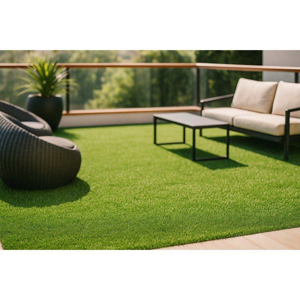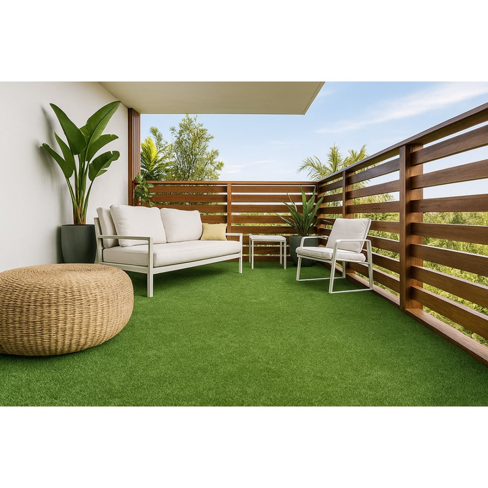Συνθετικό γκαζόν Star 15mm σε πολύ προσιτή τιμή για εξωτερικό χώρο, κατάλληλο για βεράντες, προσόψεις καταστημάτων, κήπους, αυλές, παιδότοπους, σχολεία, περιβάλλοντες χώρους πισίνας, beach bar, roof gardens κ.α. Αποτελείται από ίσια πράσινη μονόκλωνη ίνα πολυαιθυλενίου.
