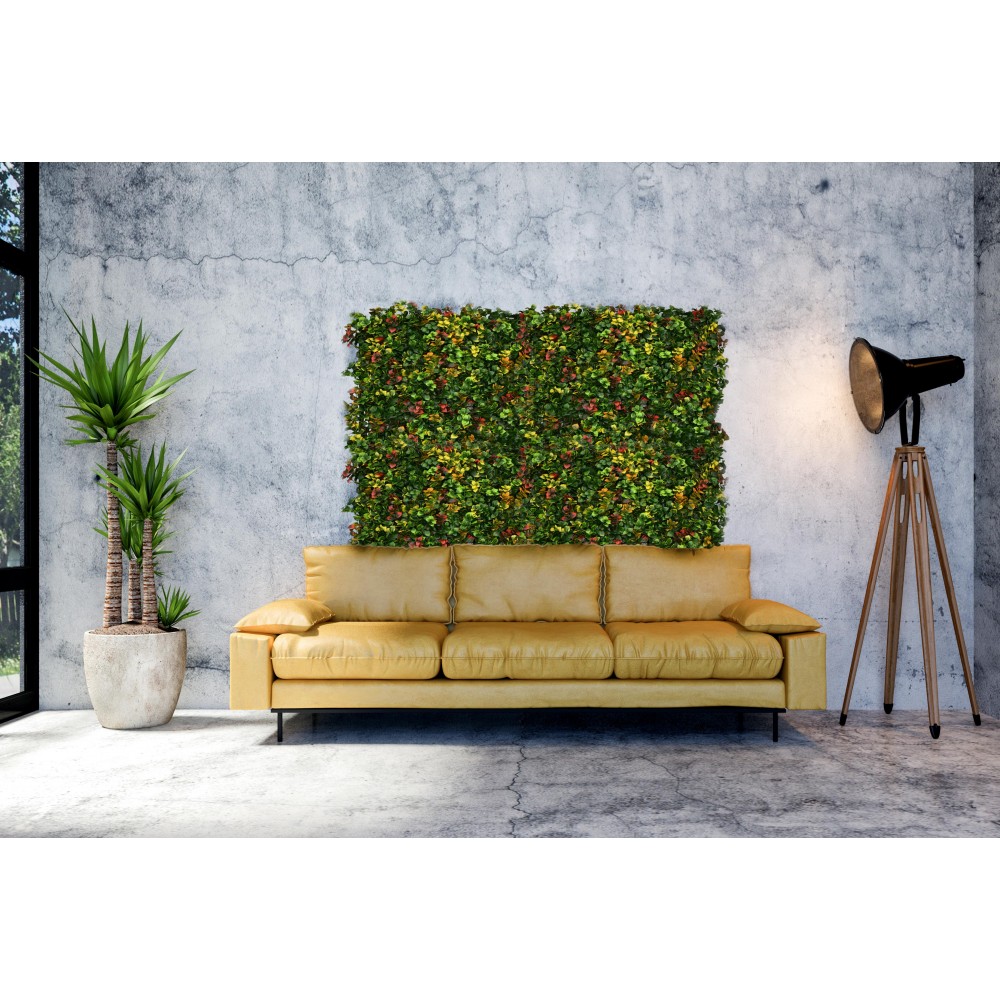Συνθετικό διακοσμητικό πάνελ με πυκνή φυλλωσιά, σε πλακίδιο 0,50m x 0,50m. Δίνει μία αίσθηση ζωντάνιας και φυσικότητας στο χώρο σας. Διακοσμήστε τον εξωτερικό ή εσωτερικό χώρο σας με τα πάνελ φυλλωσιάς και δημιουργήστε ένα μοναδικό κάθετο κήπο.