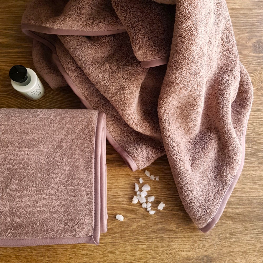 Σετ πετσέτες μπάνιου από 100% αιγυπτιακό βαμβάκι, Ιταλικό ύφασμα, με εξαιρετικά απαλή υφή, μεγάλη πυκνότητα και ανθεκτικότητα. Το βάρος 690 gr/m² εξασφαλίζει μέγιστη απορροφητικότητα και άνεση, ενώ η εκλεπτυσμένη βαμβακερή σατέν φάσα προσθέτει κομψή λεπτομέρεια.