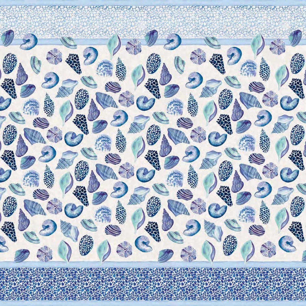 The blue of the sea and the echo of the waves in a collection of precious shells.
