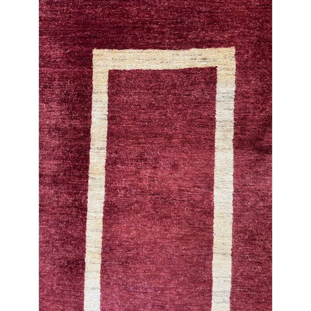 Το μαλλί είναι στριφτό στο χέρι και οι βαφές του είναι φυτικές. Το τελικό φινίρισμα του χαλιού γίνεται με ειδικό πετροπλύσιμο δίνοντας μια ιδιαίτερη αντικέ όψη.